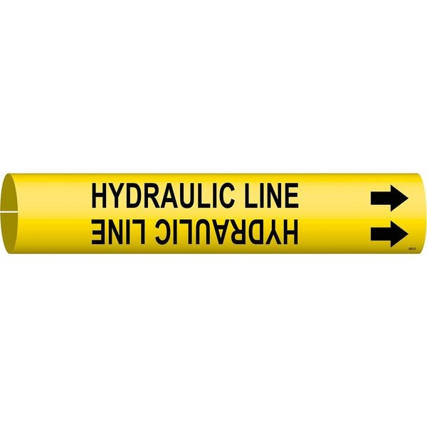 Pipe Marker, Pipe Marker Mounting Style Snap-On Pipe Marker, Pipe Marker Legend Hydraulic Line, Legend Text Color Black, Character Height 1 1/4 in, Background Color Yellow, With or Without Arrows With