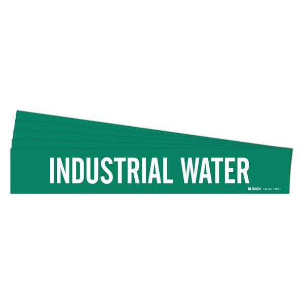 Pipe Marker, Pipe Marker Mounting Style Adhesive Pipe Marker, Pipe Marker Legend Industrial Water, Legend Text Color White, Character Height 2 in, Background Color Green, With or Without Arrows Without, Package Quantity 5