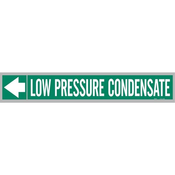 Pipe Marker, Pipe Marker Mounting Style Adhesive Pipe Marker, Pipe Marker Legend Low Pressure Condensate, Legend Text Color White, Background Color Green, With or Without Arrows With