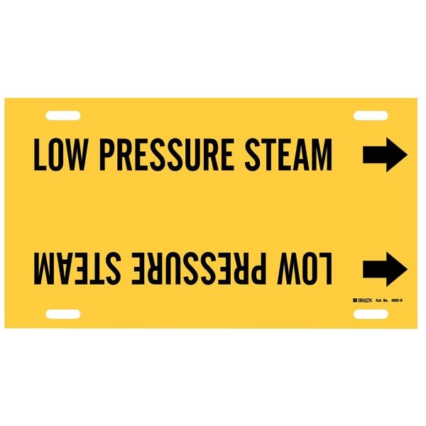 Pipe Marker, Pipe Marker Mounting Style Strap-On Pipe Marker, Pipe Marker Legend Low Pressure Steam, Legend Text Color Black, Character Height 3 1/2 in, Background Color Yellow, With or Without Arrows With