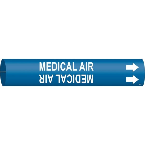 Pipe Marker, Pipe Marker Mounting Style Snap-On Pipe Marker, Pipe Marker Legend Medical Air, Legend Text Color White, Character Height 1 1/4 in, Background Color Blue, With or Without Arrows With
