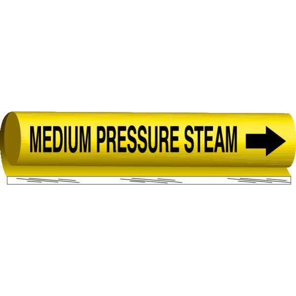 Pipe Marker, Pipe Marker Mounting Style Wrap-Around Pipe Marker, Pipe Marker Legend Medium Pressure Steam, Legend Text Color Black, Character Height 3/4 in, Background Color Yellow, With or Without Arrows With