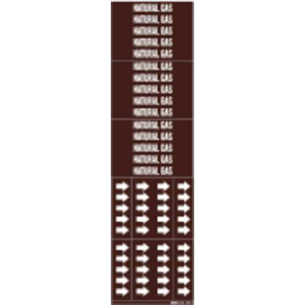 Pipe Marker, Pipe Marker Mounting Style Adhesive Pipe Marker, Pipe Marker Legend Natural Gas, Legend Text Color White, Character Height 1/2 in, Background Color Brown, With or Without Arrows Without