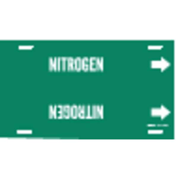 Pipe Marker, Pipe Marker Mounting Style Strap-On Pipe Marker, Pipe Marker Legend Nitrogen, Legend Text Color White, Character Height 1 1/4 in, Background Color Green, With or Without Arrows With