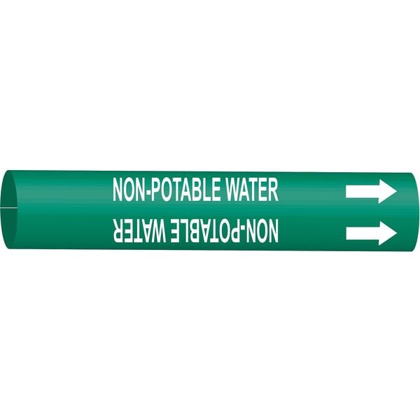 Pipe Marker, Pipe Marker Mounting Style Strap-On Pipe Marker, Pipe Marker Legend Non-Potable Water, Legend Text Color White, Character Height 3 1/2 in, Background Color Green, With or Without Arrows With