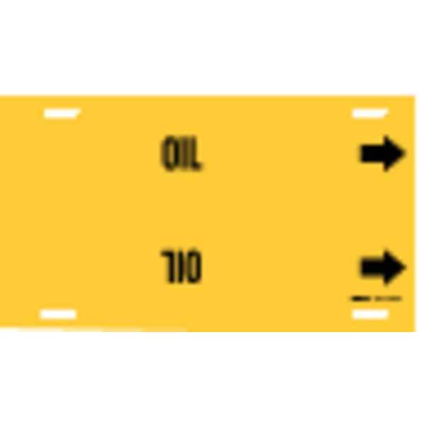 Pipe Marker, Pipe Marker Mounting Style Strap-On Pipe Marker, Pipe Marker Legend Oil, Legend Text Color Black, Character Height 3 1/2 in, Background Color Yellow, With or Without Arrows With