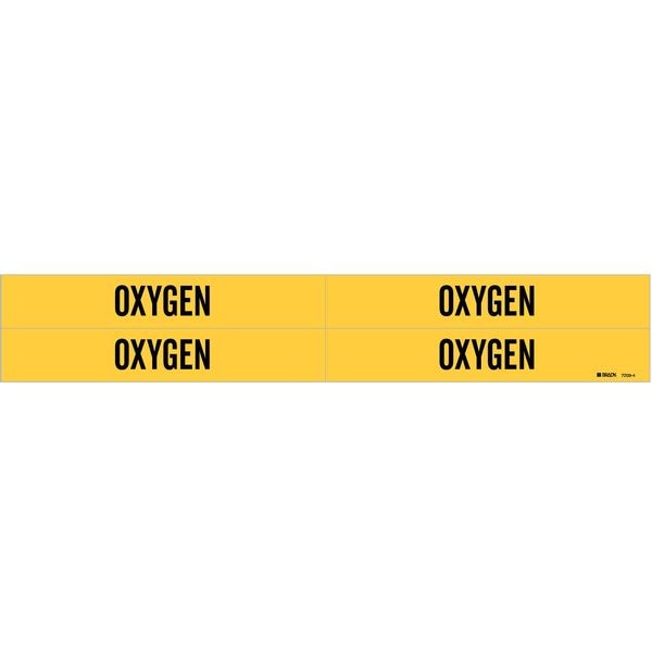 Pipe Marker, Pipe Marker Mounting Style Adhesive Pipe Marker, Pipe Marker Legend Oxygen, Legend Text Color Black, Character Height 3/4 in, Background Color Yellow, With or Without Arrows Without