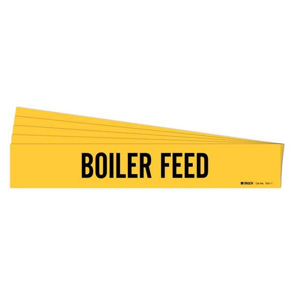 Pipe Marker, Pipe Marker Mounting Style Adhesive Pipe Marker, Pipe Marker Legend Boiler Feed, Legend Text Color Black, Character Height 2 in, Background Color Yellow, With or Without Arrows Without, Package Quantity 5