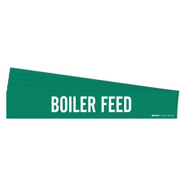Pipe Marker, Pipe Marker Mounting Style Adhesive Pipe Marker, Pipe Marker Legend Boiler Feed, Legend Text Color White, Character Height 3 1/2 in, Background Color Green, With or Without Arrows Without, Package Quantity 5