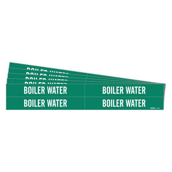 Pipe Marker, Pipe Marker Mounting Style Adhesive Pipe Marker, Pipe Marker Legend Boiler Water, Legend Text Color White, Character Height 3/4 in, Background Color Green, With or Without Arrows Without, Package Quantity 5