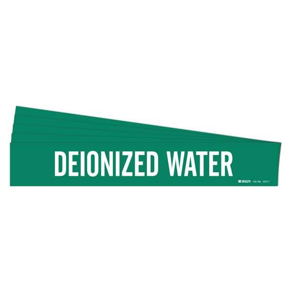Pipe Marker, Pipe Marker Mounting Style Adhesive Pipe Marker, Pipe Marker Legend Deionized Water, Legend Text Color White, Character Height 2 in, Background Color Green, With or Without Arrows Without, Package Quantity 5