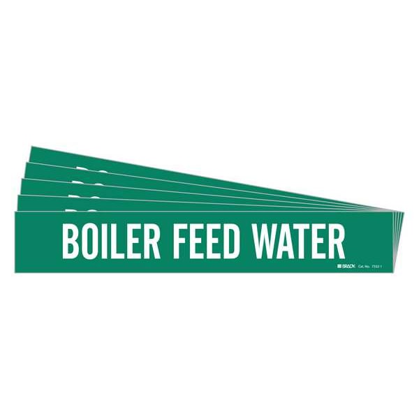Pipe Marker, Pipe Marker Mounting Style Adhesive Pipe Marker, Pipe Marker Legend Boiler Feed Water, Legend Text Color White, Character Height 2 1/2 in, Background Color Green, With or Without Arrows Without, Package Quantity 5