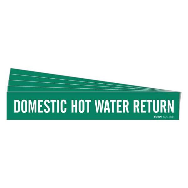 Pipe Marker, Pipe Marker Mounting Style Adhesive Pipe Marker, Pipe Marker Legend Domestic Hot Water Supply, Legend Text Color White, Character Height 2 in, Background Color Green, With or Without Arrows Without, Package Quantity 5