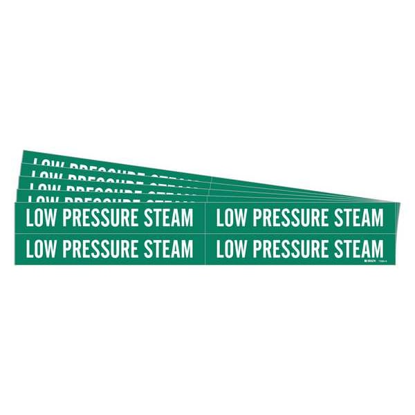 Pipe Marker, Pipe Marker Mounting Style Adhesive Pipe Marker, Pipe Marker Legend Low Pressure Steam, Legend Text Color White, Character Height 3/4 in, Background Color Green, With or Without Arrows Without, Package Quantity 5