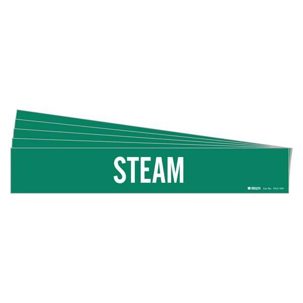 Pipe Marker, Pipe Marker Mounting Style Adhesive Pipe Marker, Pipe Marker Legend Steam, Legend Text Color White, Character Height 3 1/2 in, Background Color Green, With or Without Arrows Without, Package Quantity 5
