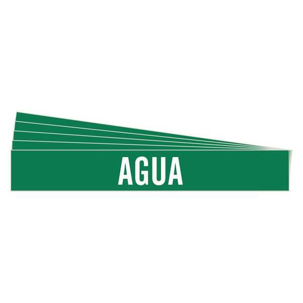 Pipe Marker, Pipe Marker Mounting Style Adhesive Pipe Marker, Pipe Marker Legend Agua, Legend Text Color White, Character Height 3 1/2 in, Background Color Green, With or Without Arrows Without, Package Quantity 5