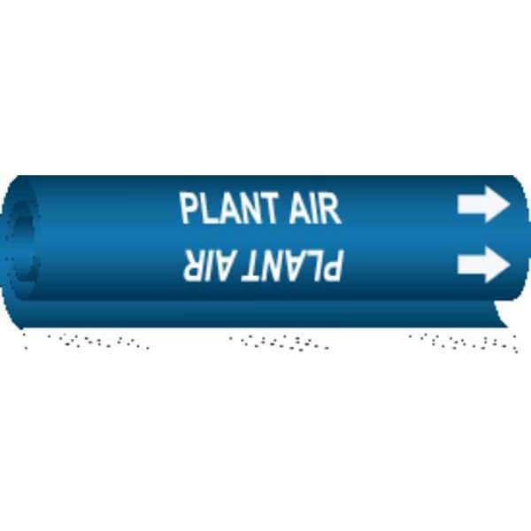 Pipe Marker, Pipe Marker Mounting Style Wrap-Around Pipe Marker, Pipe Marker Legend Plant Air, Legend Text Color White, Character Height 3/4 in, Background Color Blue, With or Without Arrows With