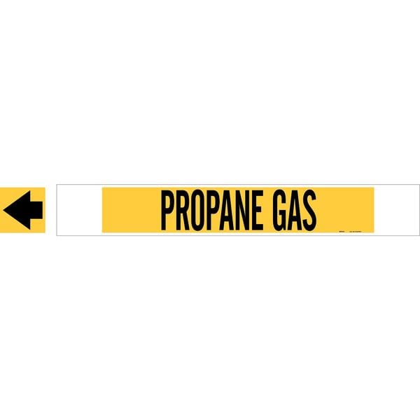 Pipe Marker, Pipe Marker Mounting Style Fiberglass Carrier with Strapping and Mounting Clip Pipe Markers, Pipe Marker Legend Propane Gas, Legend Text Color Black, Character Height 3 1/2 in, Background Color Yellow, With or Without Arrows With