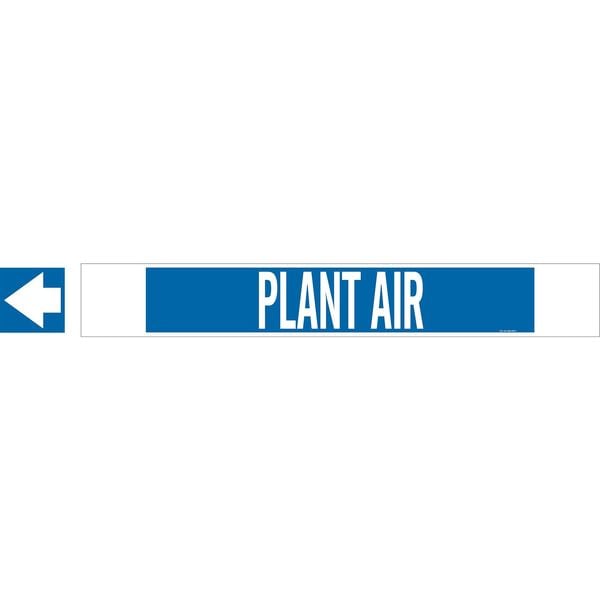 Pipe Marker, Pipe Marker Mounting Style Fiberglass Carrier with Strapping and Mounting Clip Pipe Markers, Pipe Marker Legend Plant Air, Legend Text Color White, Character Height 3 1/2 in, Background Color Blue, With or Without Arrows With