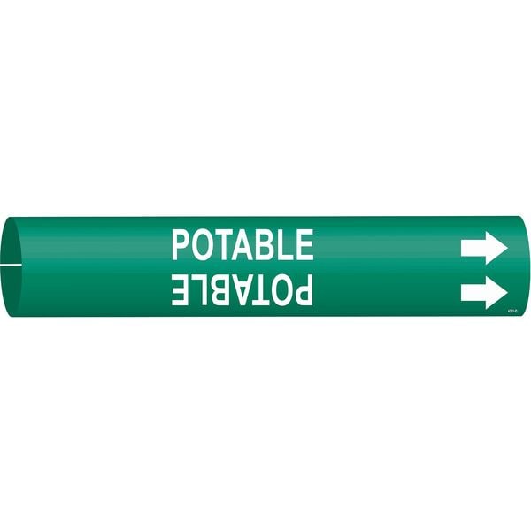 Pipe Marker, Pipe Marker Mounting Style Snap-On Pipe Marker, Pipe Marker Legend Potable, Legend Text Color White, Character Height 1 1/4 in, Background Color Green, With or Without Arrows With