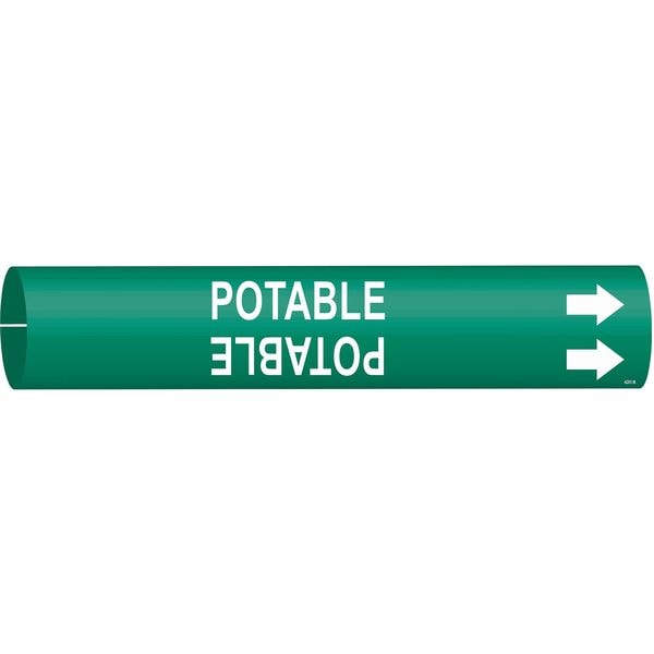 Pipe Marker, Pipe Marker Mounting Style Snap-On Pipe Marker, Pipe Marker Legend Potable, Legend Text Color White, Character Height 3/4 in, Background Color Green, With or Without Arrows With