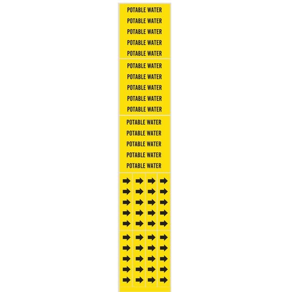 Pipe Marker, Pipe Marker Mounting Style Adhesive Pipe Marker, Pipe Marker Legend Potable Water, Legend Text Color Black, Character Height 1/2 in, Background Color Yellow, With or Without Arrows Without