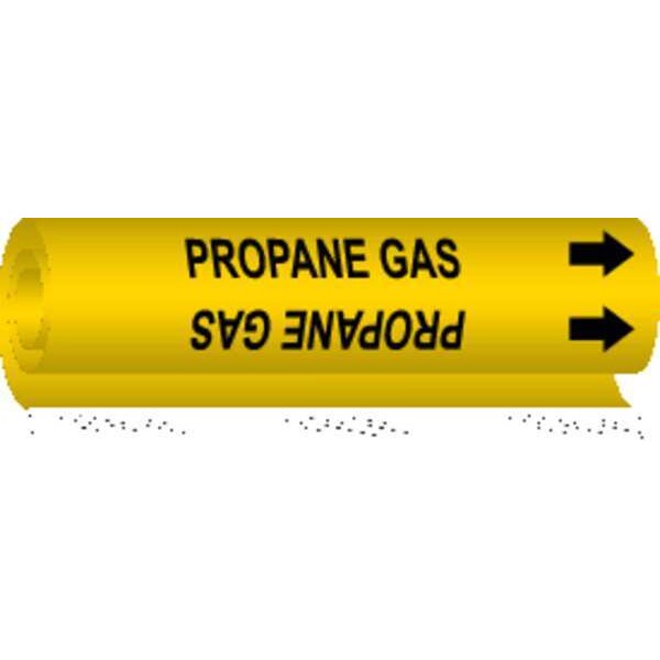 Pipe Marker, Pipe Marker Mounting Style Wrap-Around Pipe Marker, Pipe Marker Legend Propane Gas, Legend Text Color Black, Character Height 1 1/4 in, Background Color Yellow, With or Without Arrows With
