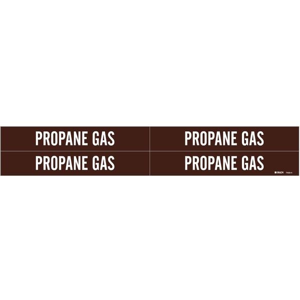 Pipe Marker, Pipe Marker Mounting Style Adhesive Pipe Marker, Pipe Marker Legend Propane Gas, Legend Text Color White, Character Height 3/4 in, Background Color Brown, With or Without Arrows Without