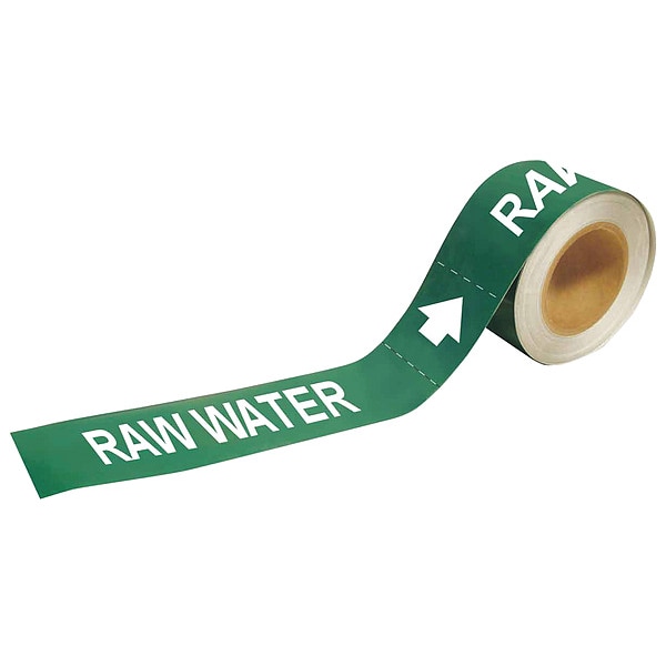 Pipe Marker, Pipe Marker Mounting Style Adhesive Pipe Marker, Pipe Marker Legend Raw Water, Legend Text Color White, Background Color Green, With or Without Arrows With