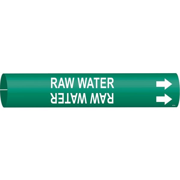 Pipe Marker, Pipe Marker Mounting Style Snap-On Pipe Marker, Pipe Marker Legend Raw Water, Legend Text Color White, Character Height 1/2 in, Background Color Green, With or Without Arrows With