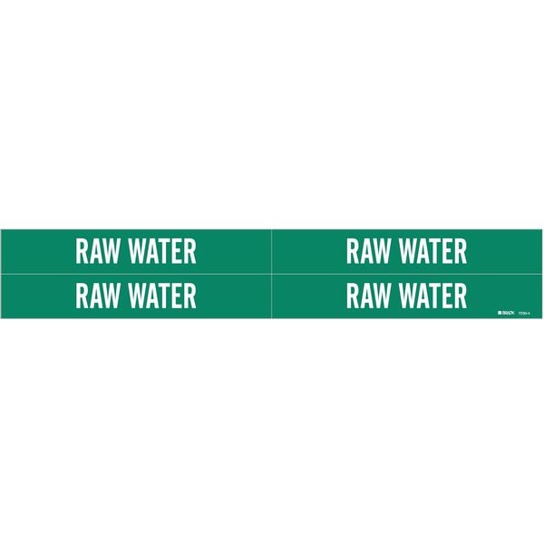 Pipe Marker, Pipe Marker Mounting Style Adhesive Pipe Marker, Pipe Marker Legend Raw Water, Legend Text Color White, Character Height 3/4 in, Background Color Green, With or Without Arrows Without