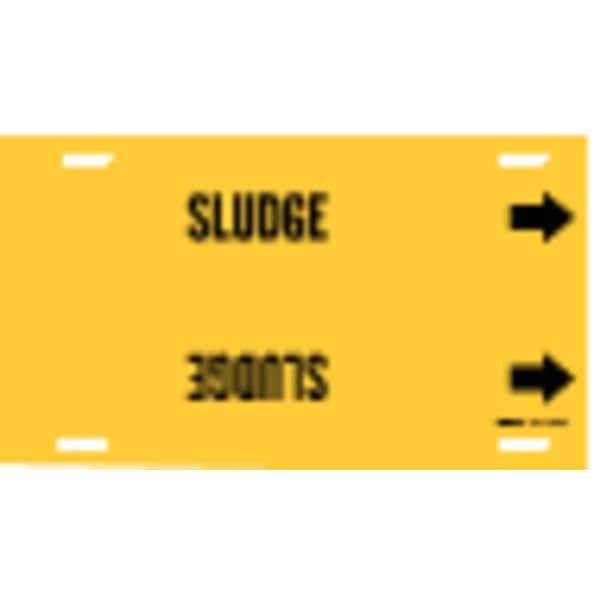 Pipe Marker, Pipe Marker Mounting Style Strap-On Pipe Marker, Pipe Marker Legend Sludge, Legend Text Color Black, Character Height 3 1/2 in, Background Color Yellow, With or Without Arrows With