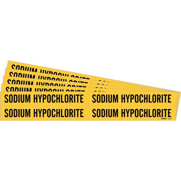 Pipe Marker, Pipe Marker Mounting Style Adhesive Pipe Marker, Pipe Marker Legend Sodium Hypochlorite, Legend Text Color Black, IIAR System Abbreviation Not Applicable, IIAR Phase Not Applicable, IIAR Pressure Level Not Applicable, Character Height 3/4 in, Background Color Yellow, With or Without Arrows Without, Package Quantity 5