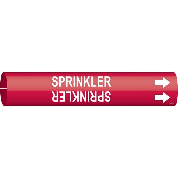 Pipe Marker, Pipe Marker Mounting Style Snap-On Pipe Marker, Pipe Marker Legend Sprinkler, Legend Text Color White, Character Height 1 1/4 in, Background Color Red, With or Without Arrows With