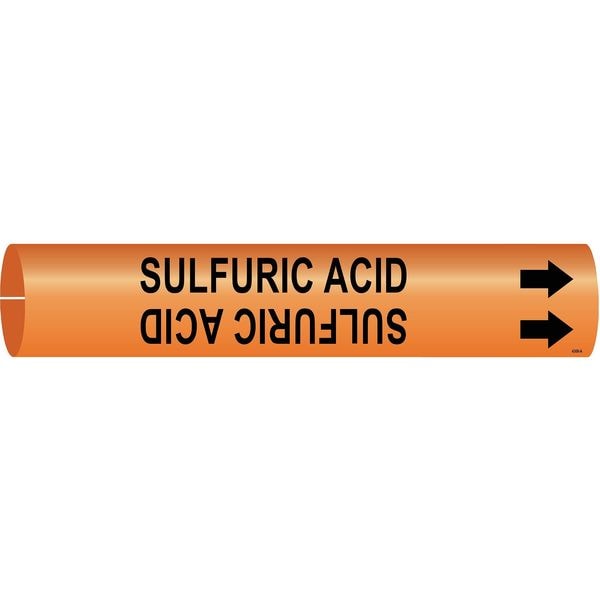 Pipe Marker, Pipe Marker Mounting Style Snap-On Pipe Marker, Pipe Marker Legend Sulfuric Acid, Legend Text Color Black, Character Height 1/2 in, Background Color Orange, With or Without Arrows With
