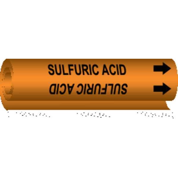 Pipe Marker, Pipe Marker Mounting Style Wrap-Around Pipe Marker, Pipe Marker Legend Sulfuric Acid, Legend Text Color Black, Character Height 1 1/4 in, Background Color Orange, With or Without Arrows With