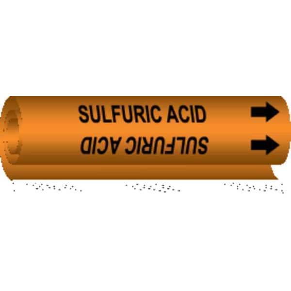 Pipe Marker, Pipe Marker Mounting Style Wrap-Around Pipe Marker, Pipe Marker Legend Sulfuric Acid, Legend Text Color Black, Character Height 1/2 in, Background Color Orange, With or Without Arrows With