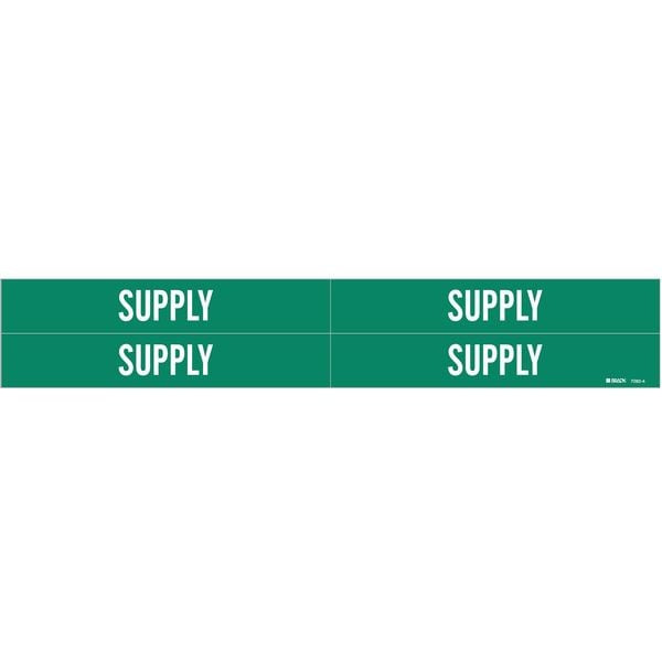 Pipe Marker, Pipe Marker Mounting Style Adhesive Pipe Marker, Pipe Marker Legend Supply, Legend Text Color White, Character Height 3/4 in, Background Color Green, With or Without Arrows Without