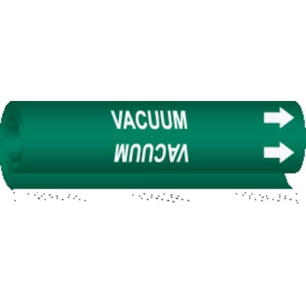 Pipe Marker, Pipe Marker Mounting Style Wrap-Around Pipe Marker, Pipe Marker Legend Vacuum, Legend Text Color White, Character Height 1/2 in, Background Color Green, With or Without Arrows With