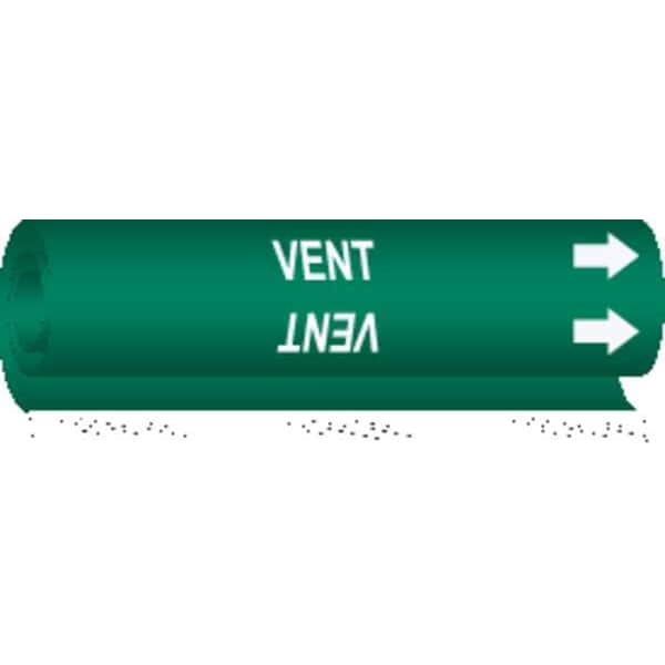 Pipe Marker, Pipe Marker Mounting Style Wrap-Around Pipe Marker, Pipe Marker Legend Vent, Legend Text Color White, Character Height 3/4 in, Background Color Green, With or Without Arrows With