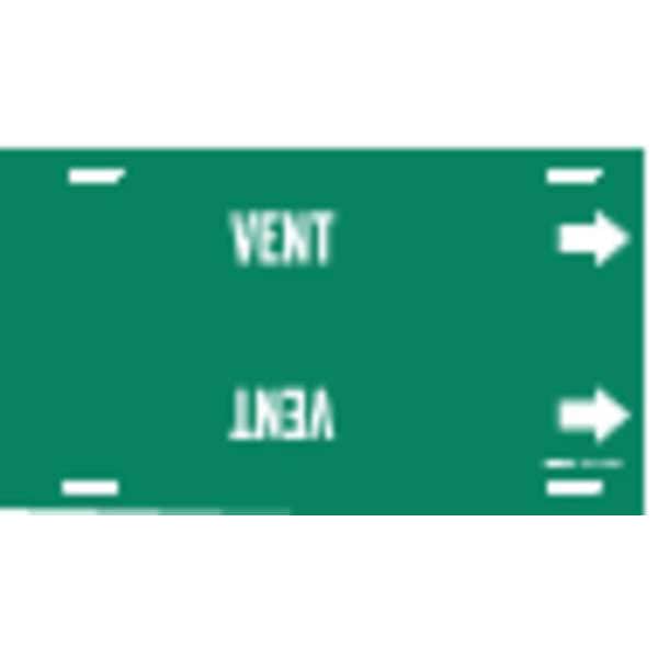 Pipe Marker, Pipe Marker Mounting Style Strap-On Pipe Marker, Pipe Marker Legend Vent, Legend Text Color White, Character Height 2 1/2 in, Background Color Green, With or Without Arrows With
