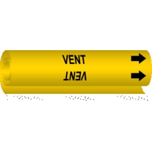 Pipe Marker, Pipe Marker Mounting Style Wrap-Around Pipe Marker, Pipe Marker Legend Vent, Legend Text Color Black, Character Height 1/2 in, Background Color Yellow, With or Without Arrows With