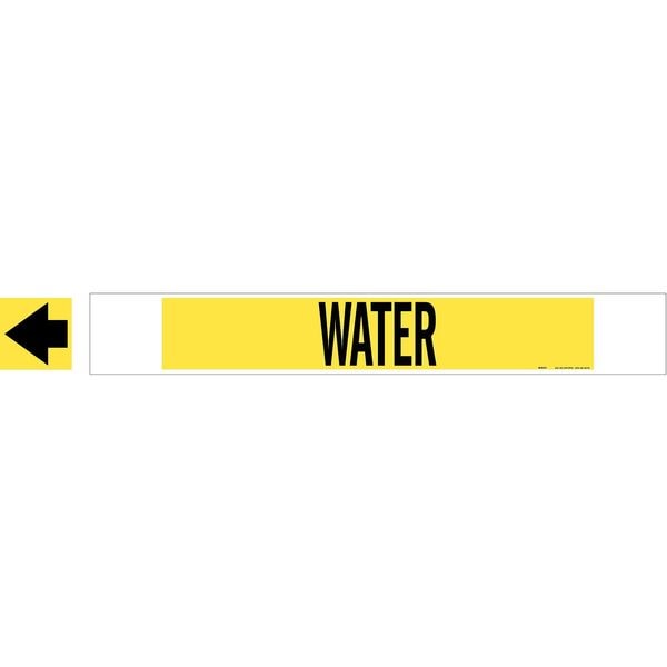 Pipe Marker, Pipe Marker Mounting Style Fiberglass Carrier with Strapping and Mounting Clip Pipe Markers, Pipe Marker Legend Water, Legend Text Color Black, Character Height 3 1/2 in, Background Color Yellow, With or Without Arrows With