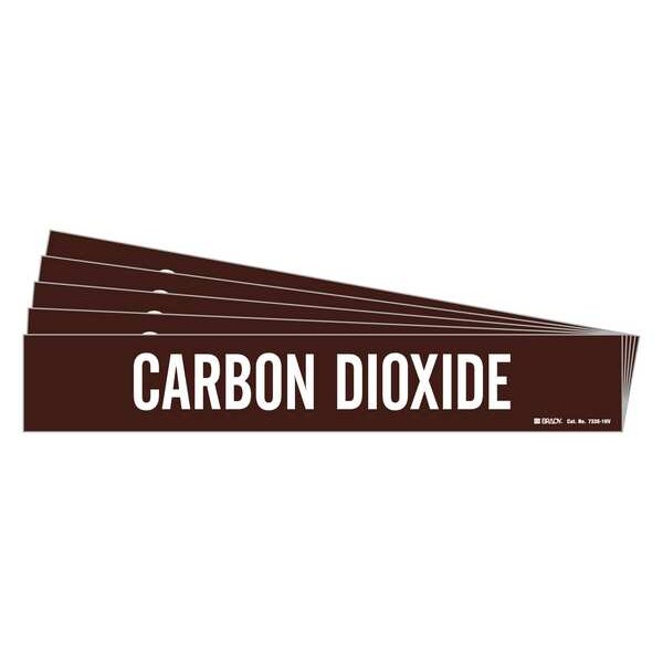 Pipe Marker, Pipe Marker Mounting Style Adhesive Pipe Marker, Pipe Marker Legend Carbon Dioxide, Legend Text Color White, IIAR System Abbreviation Not Applicable, IIAR Phase Not Applicable, IIAR Pressure Level Not Applicable, Character Height 3 1/2 in, Background Color Brown, With or Without Arrows Without, Package Quantity 5