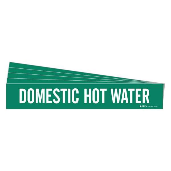 Pipe Marker, Pipe Marker Mounting Style Adhesive Pipe Marker, Pipe Marker Legend Domestic Hot Water, Legend Text Color White, Character Height 2 in, Background Color Green, With or Without Arrows Without, Package Quantity 5