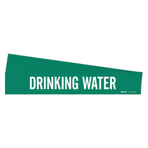 Pipe Marker, Pipe Marker Mounting Style Adhesive Pipe Marker, Pipe Marker Legend Drinking Water, Legend Text Color White, Character Height 2 in, Background Color Green, With or Without Arrows Without, Package Quantity 5