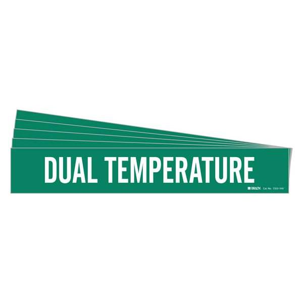 Pipe Marker, Pipe Marker Mounting Style Adhesive Pipe Marker, Pipe Marker Legend Dual Temperature, Legend Text Color White, Character Height 3 1/2 in, Background Color Green, With or Without Arrows Without, Package Quantity 5