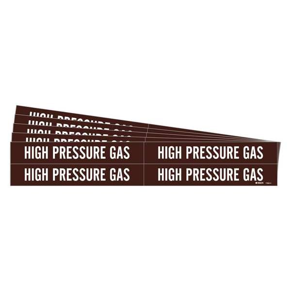 Pipe Marker, Pipe Marker Mounting Style Adhesive Pipe Marker, Pipe Marker Legend High Pressure Gas, Legend Text Color White, IIAR System Abbreviation Not Applicable, IIAR Phase Not Applicable, IIAR Pressure Level Not Applicable, Character Height 3/4 in, Background Color Brown, With or Without Arrows Without, Package Quantity 5