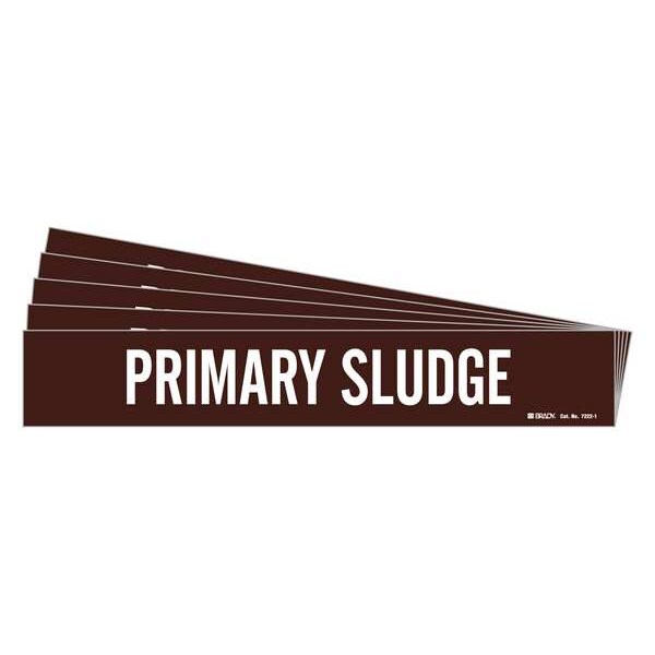 Pipe Marker, Pipe Marker Mounting Style Adhesive Pipe Marker, Pipe Marker Legend Primary Sludge, Legend Text Color White, IIAR System Abbreviation Not Applicable, IIAR Phase Not Applicable, IIAR Pressure Level Not Applicable, Character Height 2 in, Background Color Brown, With or Without Arrows Without, Package Quantity 5