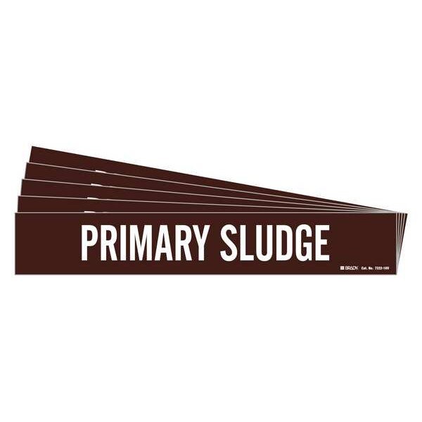 Pipe Marker, Pipe Marker Mounting Style Adhesive Pipe Marker, Pipe Marker Legend Primary Sludge, Legend Text Color White, IIAR System Abbreviation Not Applicable, IIAR Phase Not Applicable, IIAR Pressure Level Not Applicable, Character Height 3 1/2 in, Background Color Brown, With or Without Arrows Without, Package Quantity 5